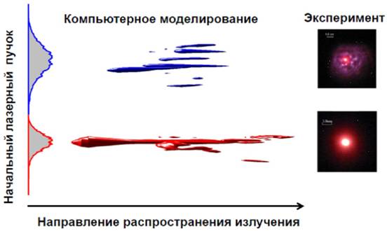 Задачей Ольги Григорьевны было участвовать в постановке эксперимента, прогнозировать его ход и интерпретировать получаемые данные. Фактически, кроме объяснения явления, требовалось до проведения дорогостоящих экспериментов предсказать зависимость пространственно – временных характеристик фемтосекундного импульса вдоль филамента. Для этих целей О.Г. Косаревой был создан пакет программ для численного моделирования явления филаментации лазерных импульсов высокой пиковой мощности в прозрачной среде. Сотрудничество с теоретической группой нелинейной поляризационной оптики профессора В.А. Макарова позволило объяснить уникальные эксперименты по двулучепреломлению пробного импульса в филаменте.
