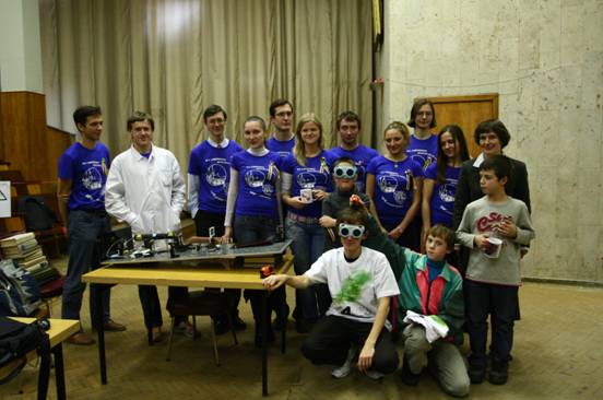 О.Г.Косарева с членами студенческого отделения SPIE физического факультета МГУ имени М.В.Ломоносова после удачно проведенного дня науки в конференц-зале корпуса нелинейной оптики)