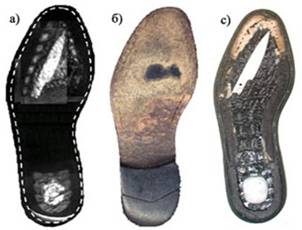 а – «терагерцовая» картинка, б – ботинок с заклеенной подошвой в видимом диапазоне, с – ботинок без подошвы в видимом диапазоне.
