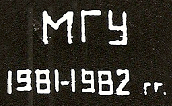 Рис. 2. Надпись, сделанная электронным пучком на пленке GaN:Zn в работах Г. В. Сапарина, М. В. Чукичева и др. |