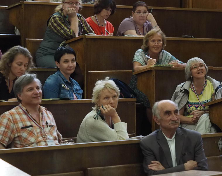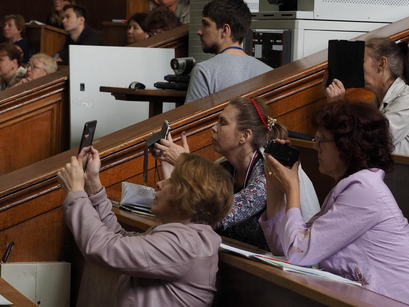Авторы учебных курсов для школьников (А.В. Грачев, Е.В. Лукашева, Н.И. Чистякова) провели для учителей мастер-классы, раскрывающие методы и подходы к изложению наиболее трудных учебных материалов курса физики старшей школы. В том числе были затронуты аспекты подготовки абитуриентов к успешному участию в олимпиаде «Ломоносов». Доцент физического факультета В.А. Грибов поделился с учителями статистикой сдачи ЕГЭ в 2014 и 2015 годах, пояснил основные мотивы смены формата экзамена по физике в 2015 году.