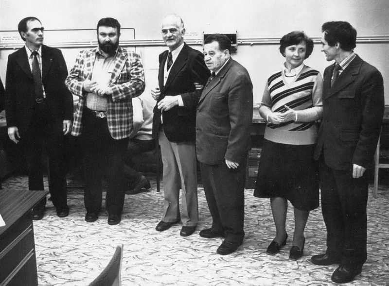 Президент Всемирной Ассоциации электронной микроскопии, родона-чальник рентгеновского микроанализа профессор Кастен P. (Castaing R.) — гость кафедры, 1978 г. (Лукьянов А.Е., Петров В.И., Кастен Р., Спивак А.Е., Дубинина Е.М., Pay Э.И.)