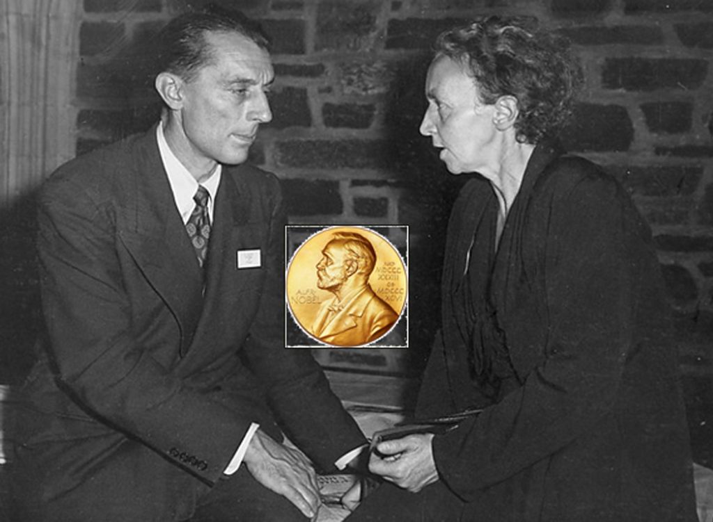 В 1935 г. им совместно была присуждена Нобелевская премия по химии «за выполненный синтез новых радиоактивных элементов». Во вступительной речи от имени Шведской королевской академии наук К.В. Пальмайер напомнил Ирен Жолио-Кюри о том, как 24 года назад она присутствовала на подобной церемонии, когда Нобелевскую премию по химии получала её мать. «В сотрудничестве с Вашим мужем, — сказал Пальмайер, — Вы достойно продолжаете эту блестящую традицию».