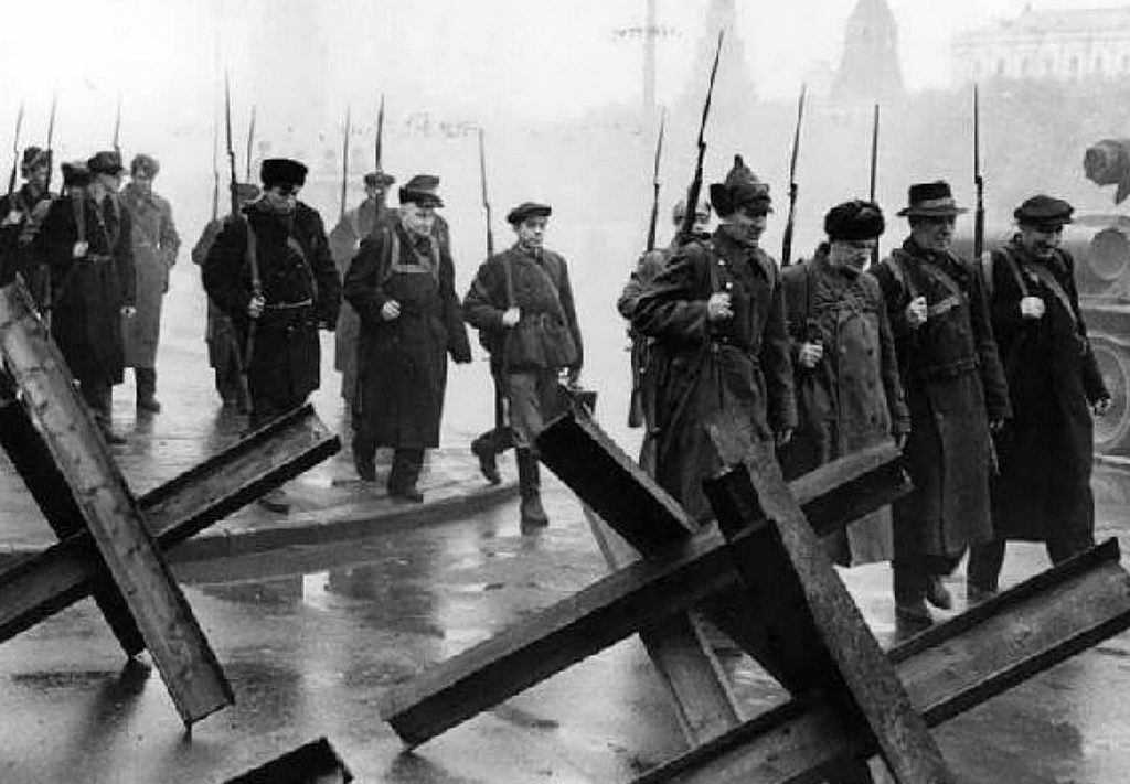 В Москве более 100 тыс. человек записались в дивизии народного ополчения, а 250 тыс. москвичей, в основном женщины и подростки, копали противотанковые рвы.